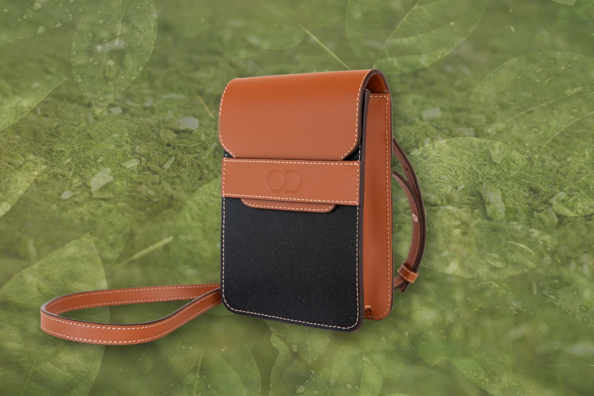 El bolso TO GO combina biomaterial y piel certificada en un diseño único y numerado, ideal para la vida urbana con un toque de lujo sostenible